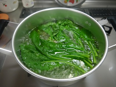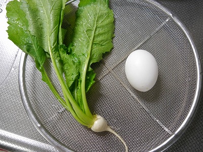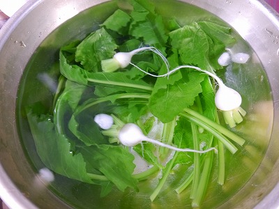 なっぱも水気を絞って適当な長さに切りそろえます。