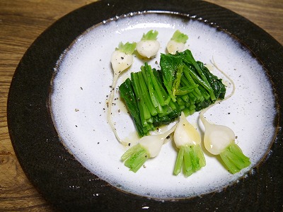 オリーブオイルとレモン汁、塩のドレッシングをかけて
