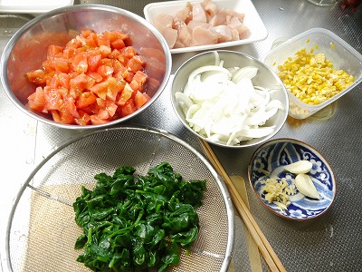 鍋にオリーブオイルを熱してニンニクショウガを炒めます。