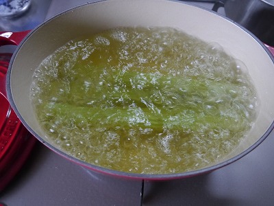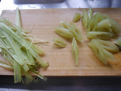 皮をむいてナナメに切ります。