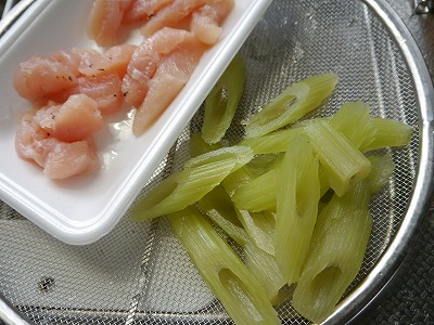 ふきは1本分。塩こしょうしたササミ。