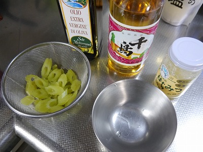 オイルと酢、蜂蜜と塩を混ぜ合わせて(分量は適当に)、