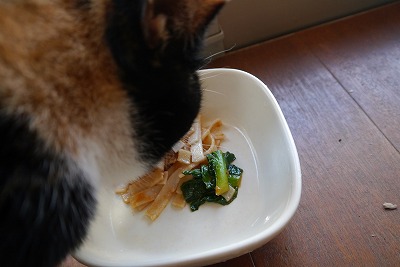 ヤマコは少し冷ましていただきま~す。(猫舌なもので。。。)おいしかったにゃ。食後は薪ストーブの横で。