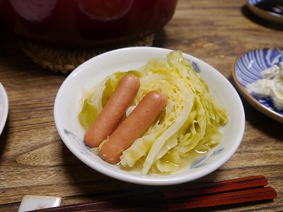 ソーセージじゃなくてベーコンでも。人参や玉ねぎ、色々野菜を加えてもいいですね。