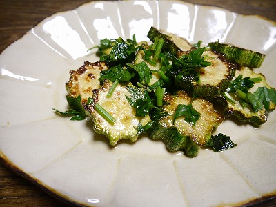 こちらは縞のズッキーニ、塩で焼いただけ。