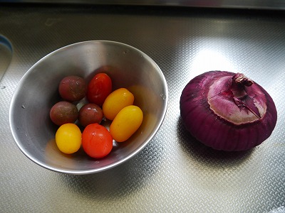 なすの白と、濃い紫と、梅の赤、青じその緑がなんとも、涼しそう。