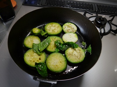 ということで焼きます。バジルも一緒に。