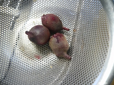 (ビーツは切るときにほとんど皮がつるりとむけました。)