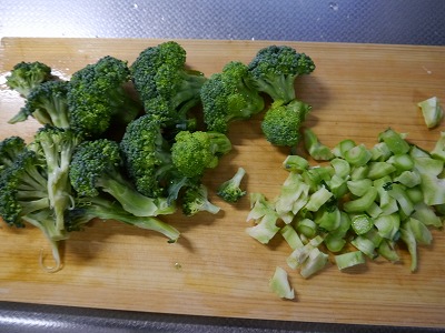 パスタを茹でるときに時間差でブロッコリーも入れて茹でます。