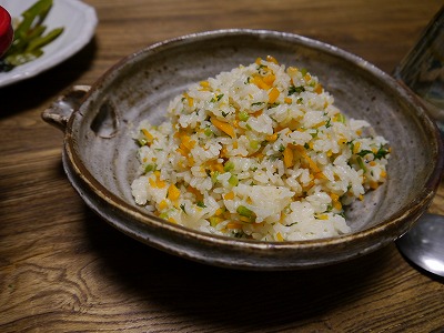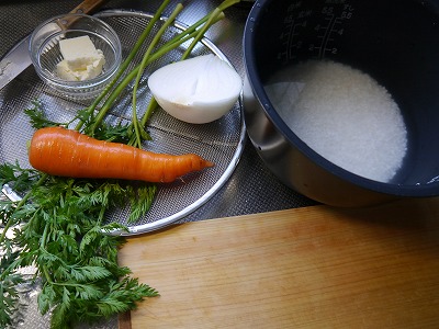 しかし今回は葉っぱつきだし、勇気をだして(?)にんじんピラフに挑戦です!