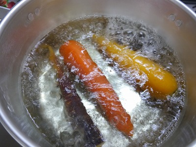 私は固いのが好きなので沸騰して3分くらいしたら取り出しました。
