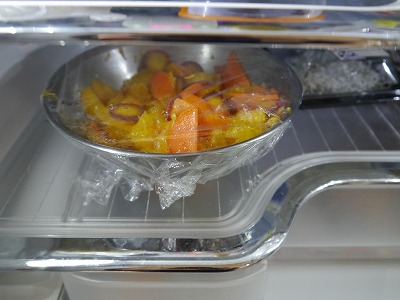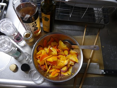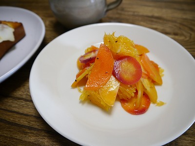 今回はオレンジと。千切りじゃなくて半月切りと輪切りにしました。