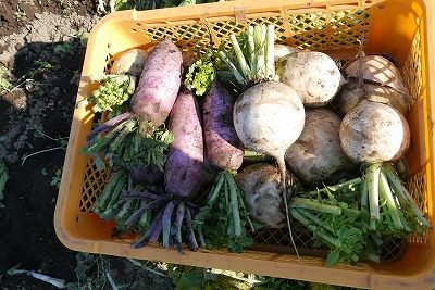 こちらは採れたて大根二種。(撮影は12月です)