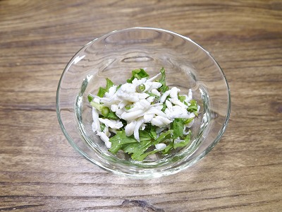 こちらは刻んだものをしらすと和えました。EVオリーブオイル、レモン汁で。