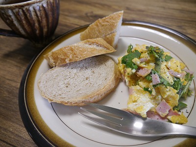 こちらはたまごと。ハムも加えてスクランブルエッグに。