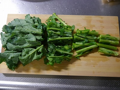 野良坊菜のしゅっとした茎部分、包丁を入れるとざくっとした感覚が小気味よく