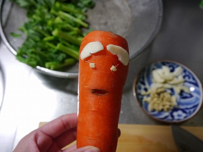 ショウガのみじん切り、ニンニクのスライスでおじいさん風にしてみました。