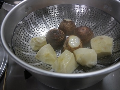 蒸しあがって少し冷ましたら里芋の皮をむくよ~。