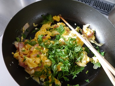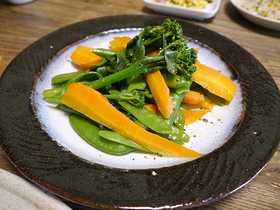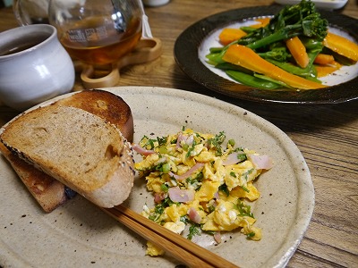 こちらはスティックブロッコリー。スティック、なんだな。いいな。切るのがもったいないけど、鍋に入らないので仕方なく半分に。はい!塩をぱらぱら。いつものように、蒸します。やまもりど〜ん。できあがり。ごちそうだ!にんじんの葉は刻んで、こちらもいつものようにくスクランブルエッグに。アユメイのパンといただきます。やはり、いつものように、おいしかった!充実!ごちそうさま。☆ベジファームの日々はFacebookページをどうぞ。☆ベジファームの色々はホームページをどうぞ。