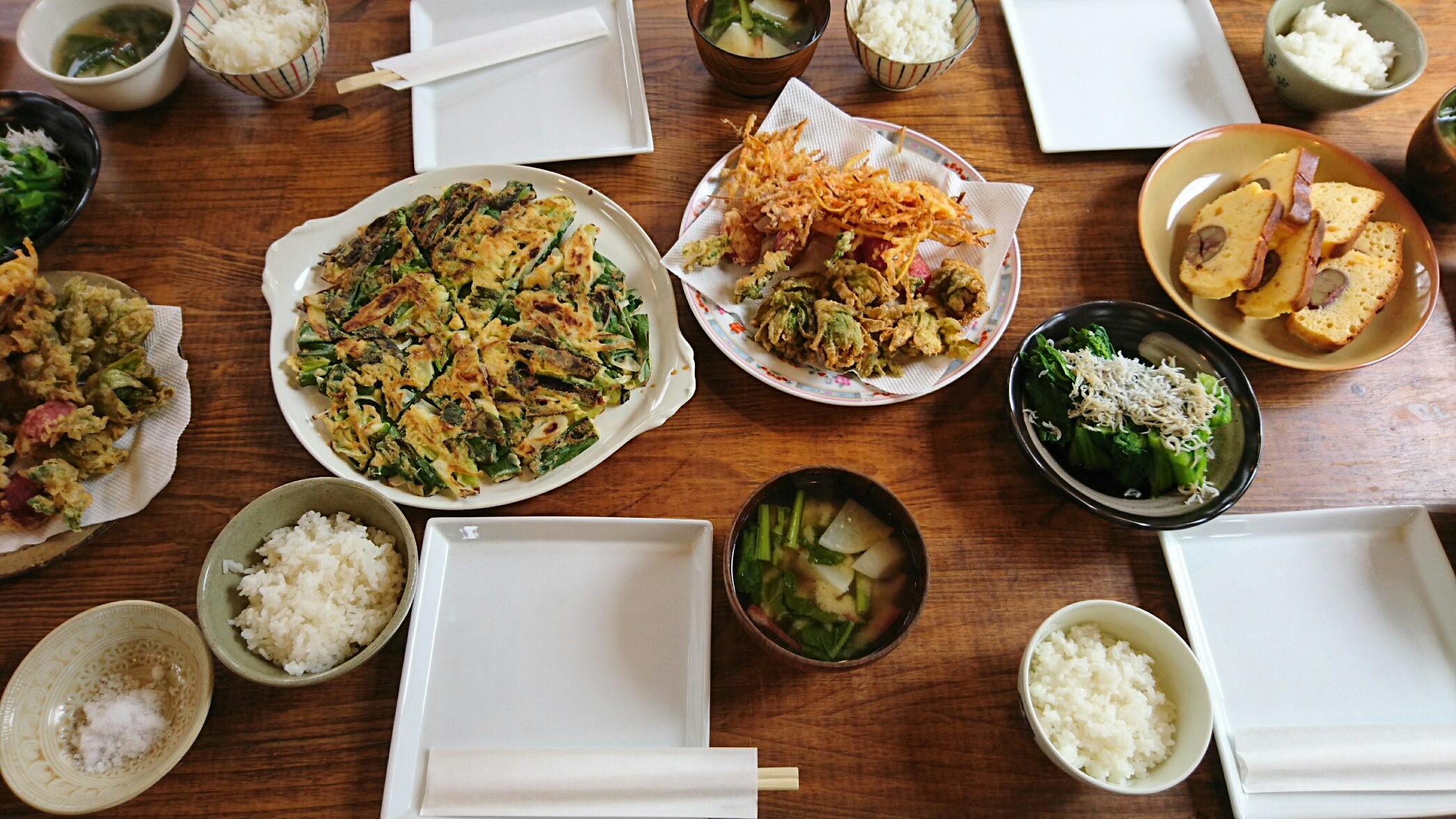 この日はお客さんが畑見学にきたので、野菜もりもりの楽しいお昼でした。